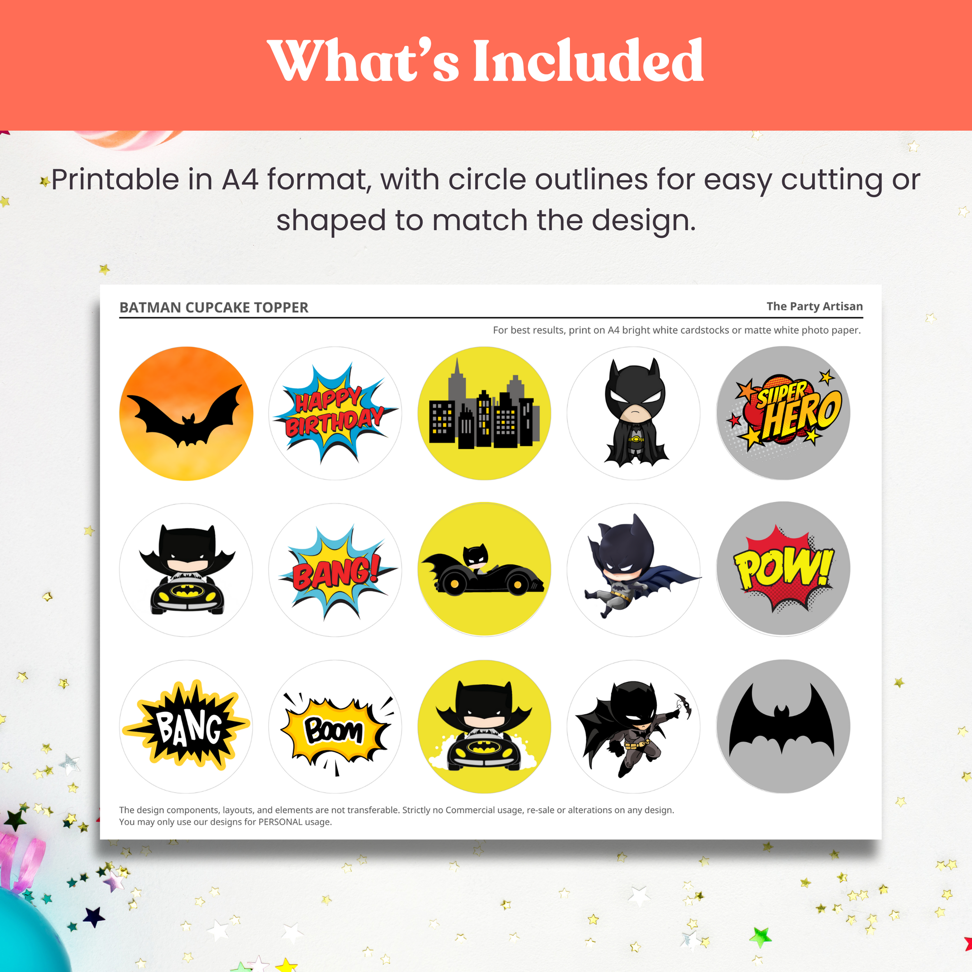 Dark City Hero Cupcake Topper Template – Printable Party Decor